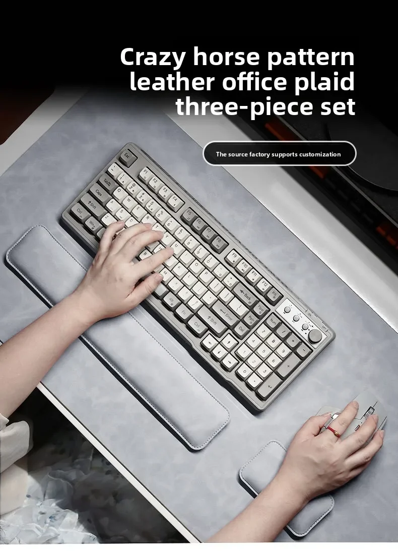 Desk Mat Waterproof PU Mouse Pad Large Mousepad Laptop Non-slip Desk Pad Keyboard Mats Mouse Mat Mouse Wrist Guard Three Pieces