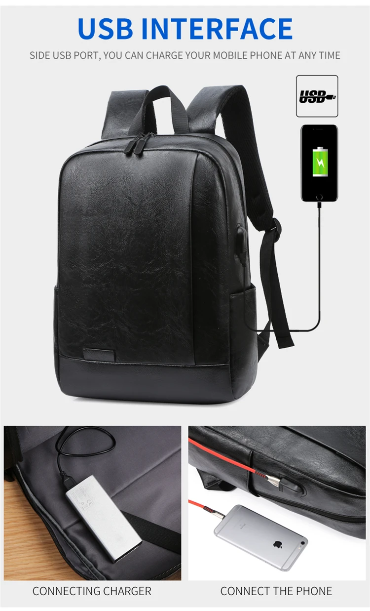 Men Fashionable Backpack PU Leather Satchel Briefcase Office Casual Travel Laptop Office Business Sports Shoulder Backpack