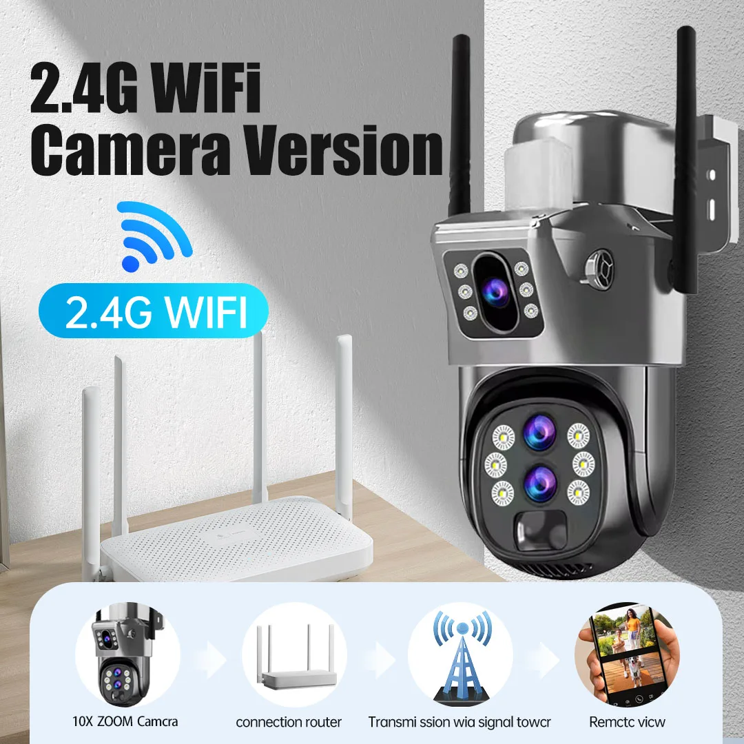 6K three lens dual screen WiFi solar cell pan tilt camera