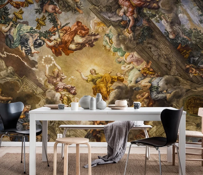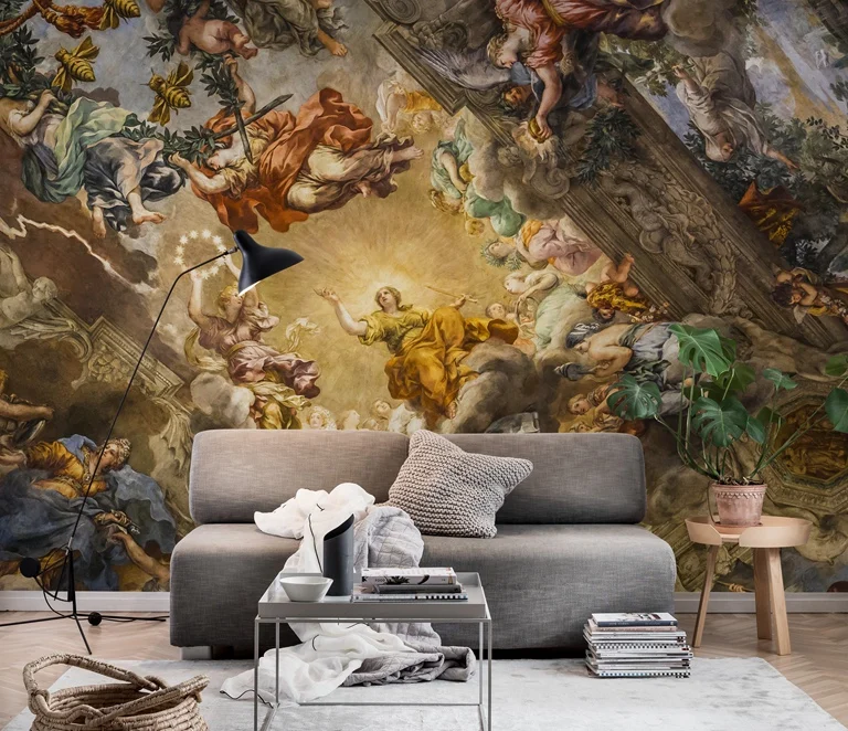 Ancient Italian Renaissance Church Wall Mural In Colorful Painting PW315509183,Traditional Non-woven Regular Wallpaer Home Decor