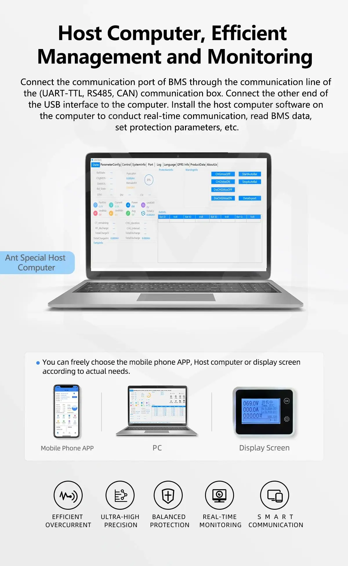 ANT smart BMS 4S Li-ion Lifepo4 LTO Battery smart bms 12V continuous 130A peak 325A Bluetooth Built-in smart balance board