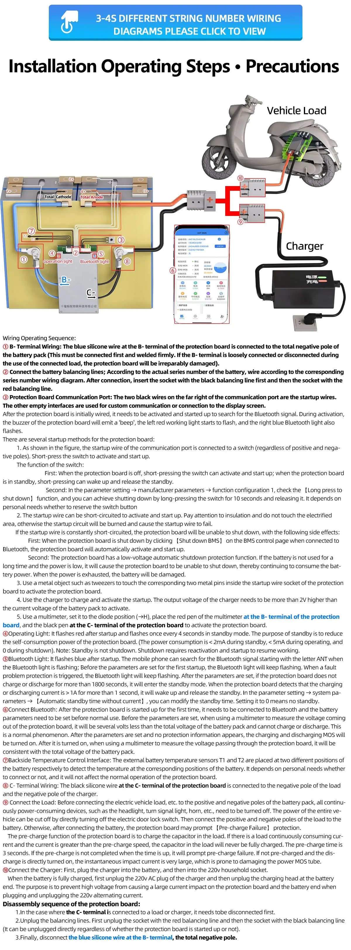 ☆ Wiring must start from B- to B+ and be connected in sequence