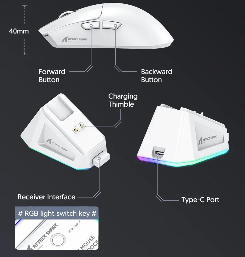 Attack Shark X11 Wireless Macro Gaming Mouse,Bluetooth Tri-Mode Connection, PixArt PAW3311, Touch Magnetic Charging Base