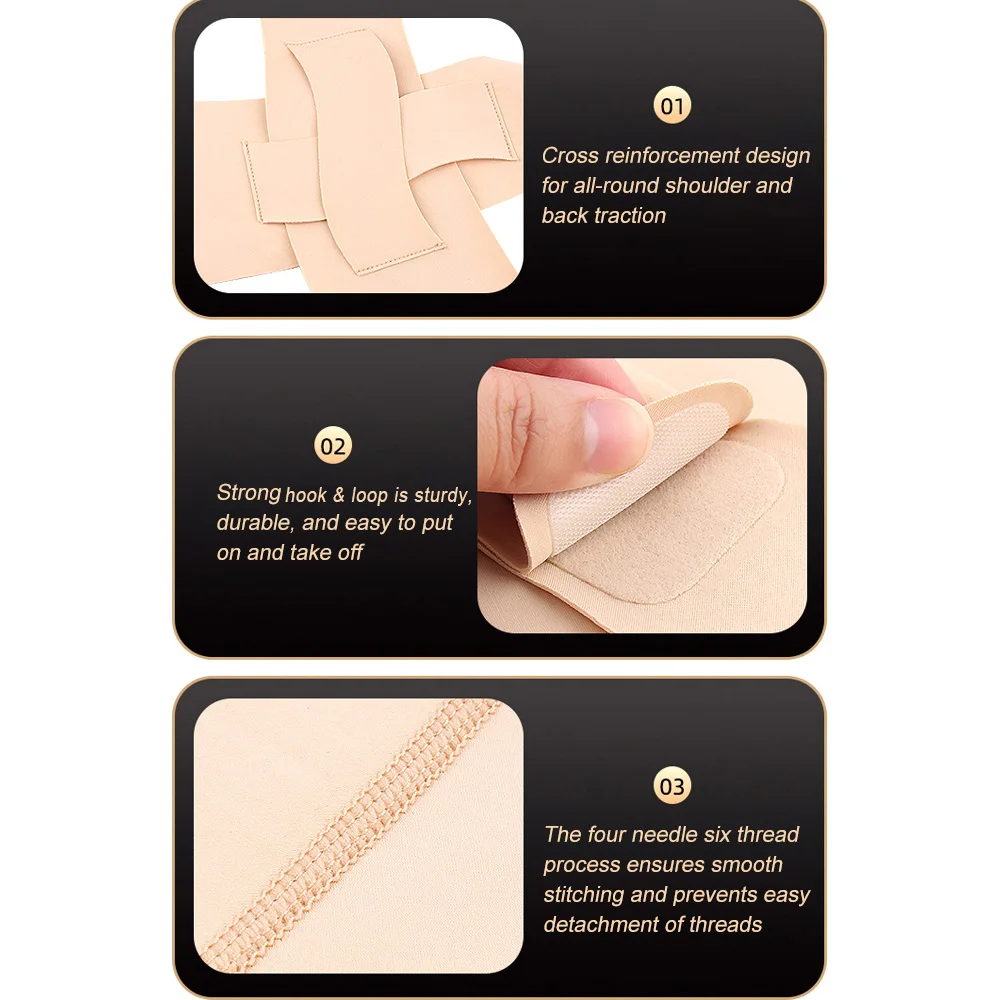 1. Experience Pain-Free Relief: Our premium posture corrector brace provides superior support, targeting upper back, neck, and shoulder pain to deliver effective relief.
