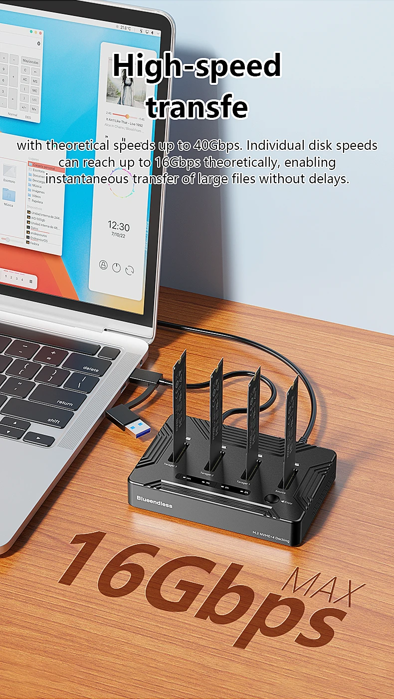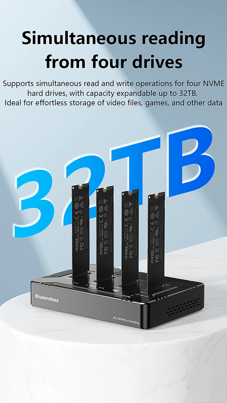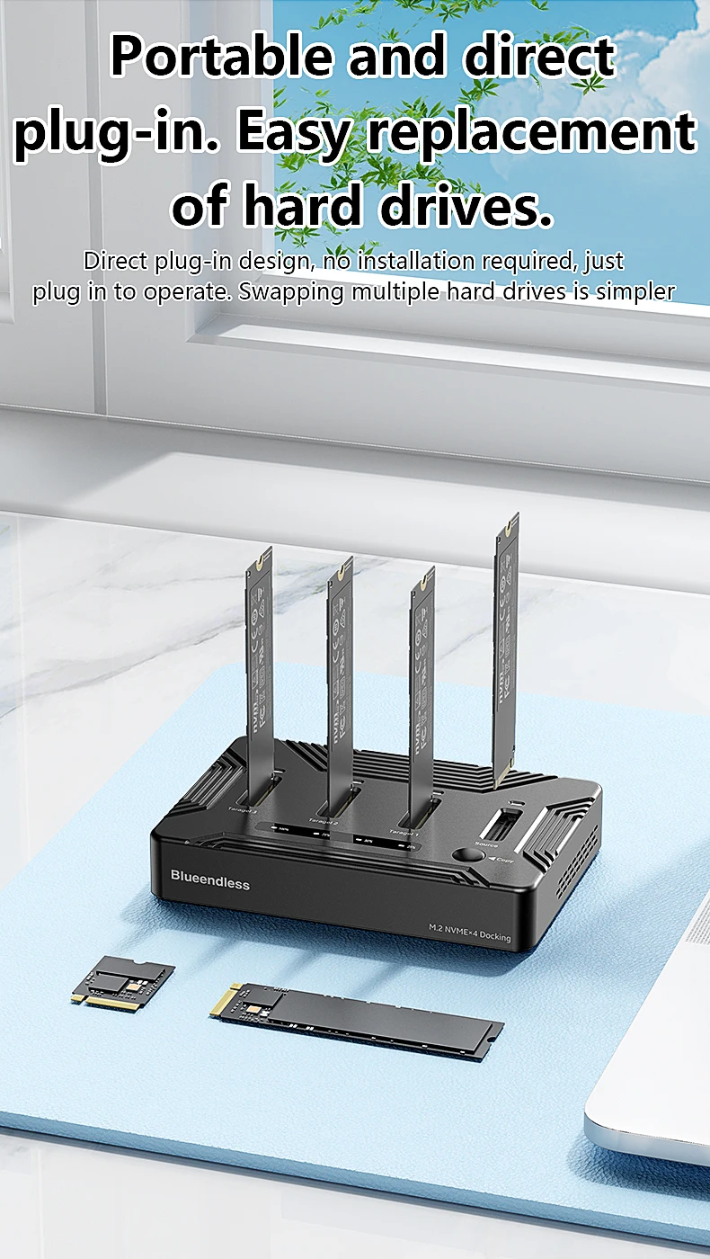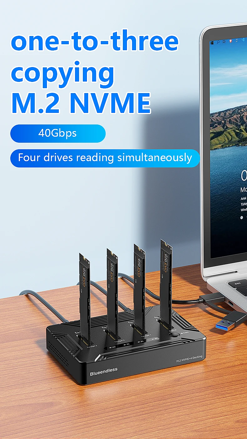 Blueendless 4 bay M.2 NVME SSD Docking Station with offline clone USB4 40Gbps M2 Nvme PCIE SSD enclosure external harddisk case