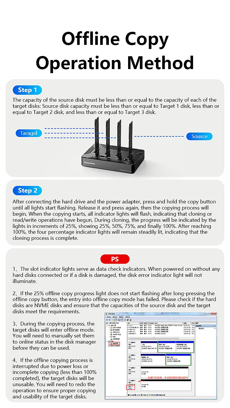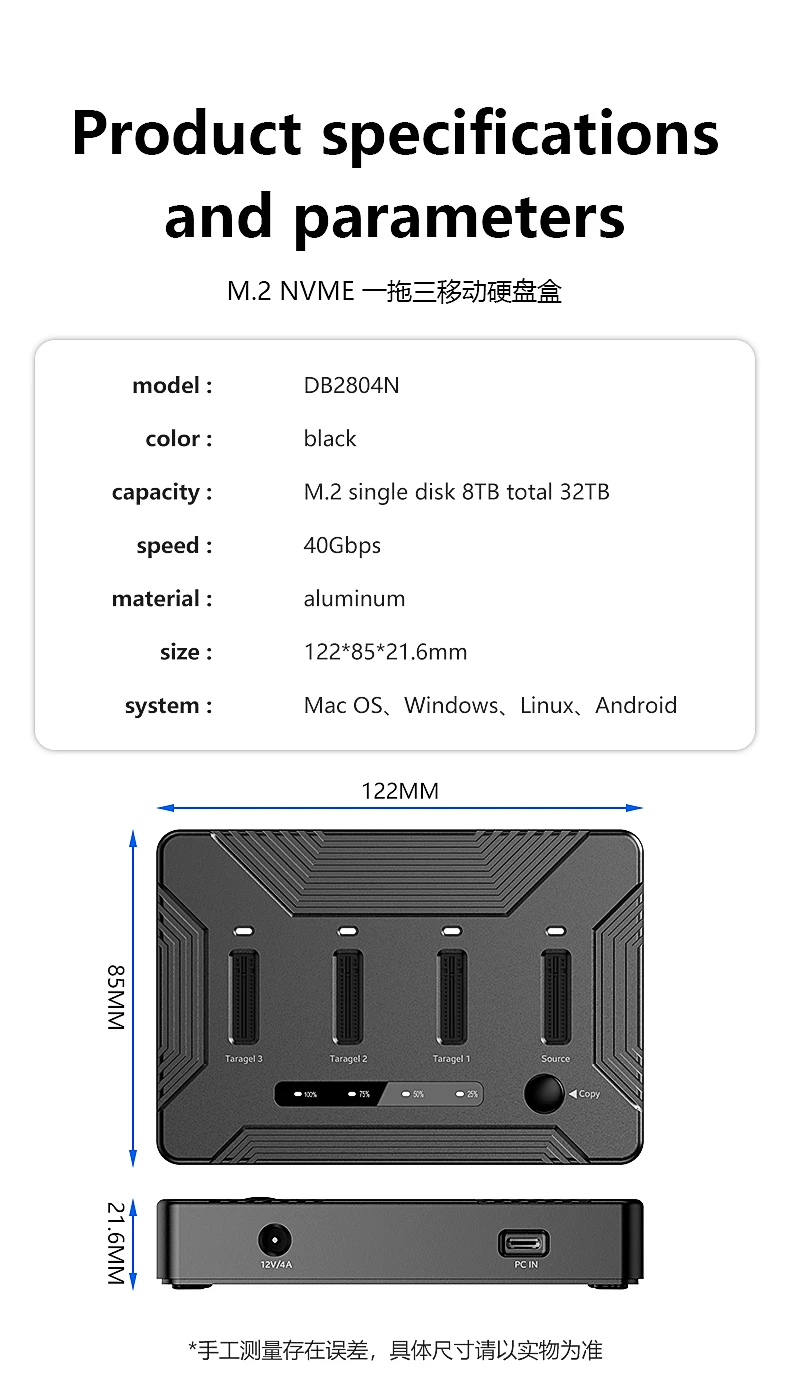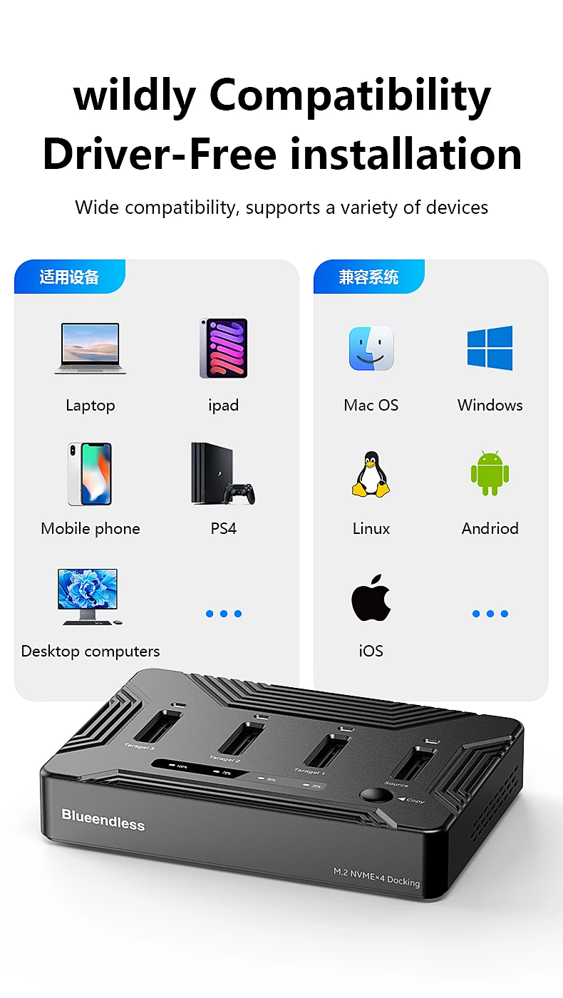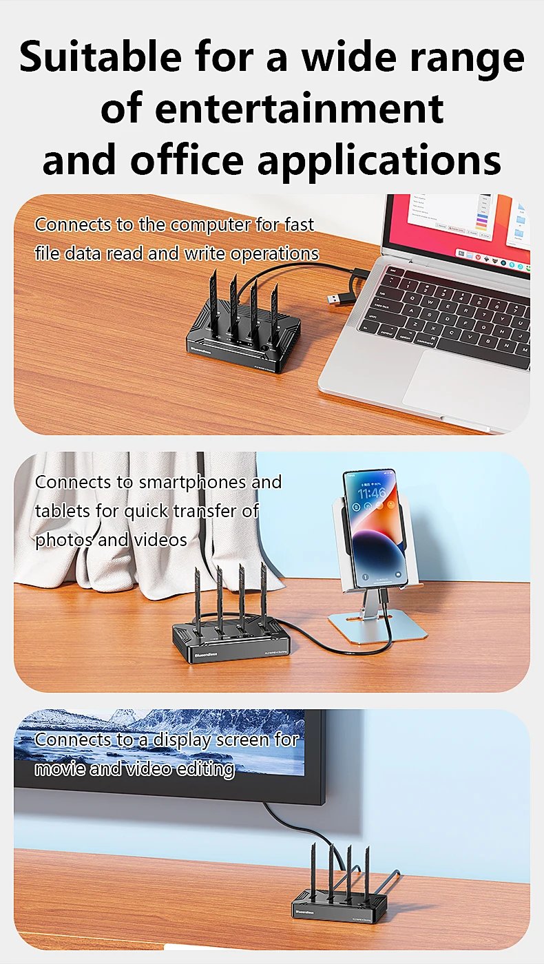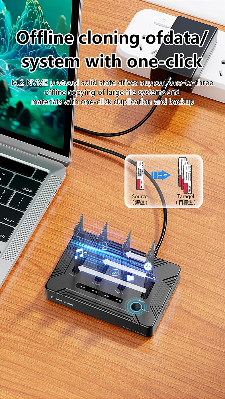 Blueendless 4 bay M.2 NVME SSD Docking Station with offline clone USB4 40Gbps M2 Nvme PCIE SSD enclosure external harddisk case