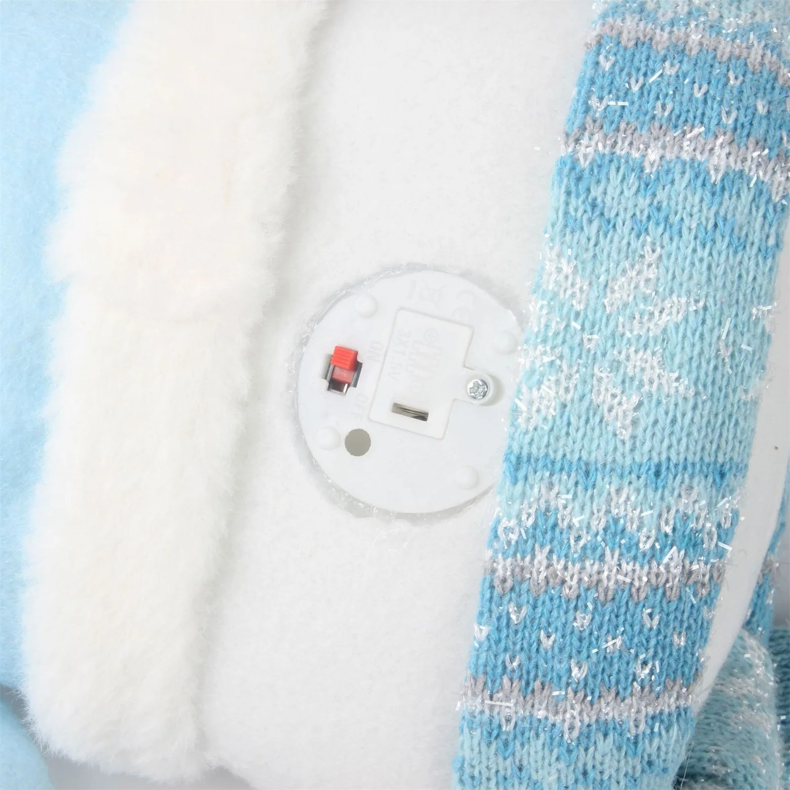 3. **Material and Craftsmanship**: The hat and scarf are made of soft plush fabric, which is comfortable to the. The snowman's face may be made of silicone or a similar material, which is soft and flexible. A built-in light-up device emits a soft warm glow when lit.