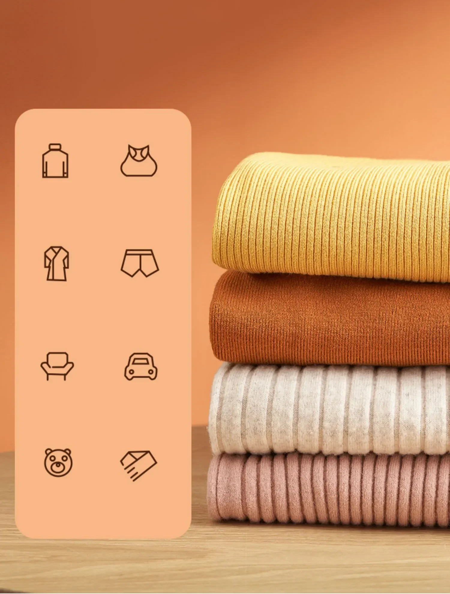 Suitable for all types of clothing and household items, such as sweeper, coat, thermal underwear, scarf, underwear, socks, gloves, sofa, cushion, sheet, quiet, blank, pillow, car seat, luxury toy and so on. Any fabric with piping can be used