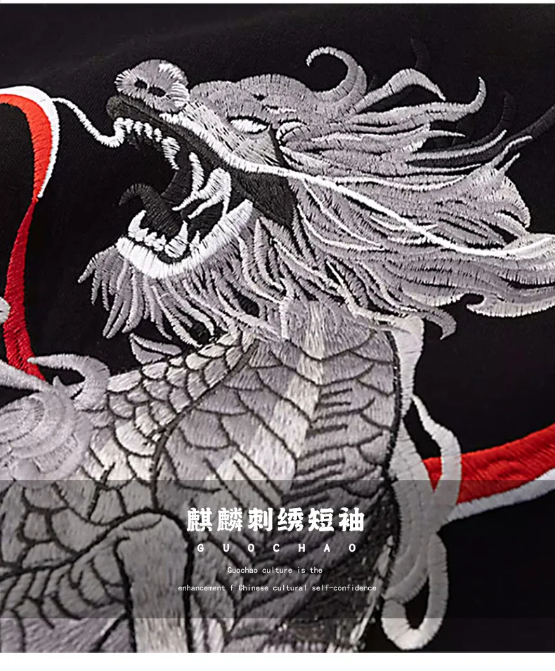 Summer Men T Shirt Harajuku Dragon Embroidery T Shirt Chinese Vintage Tees Tops Cotton Short Sleeve Casual Streetwear 09s Youth