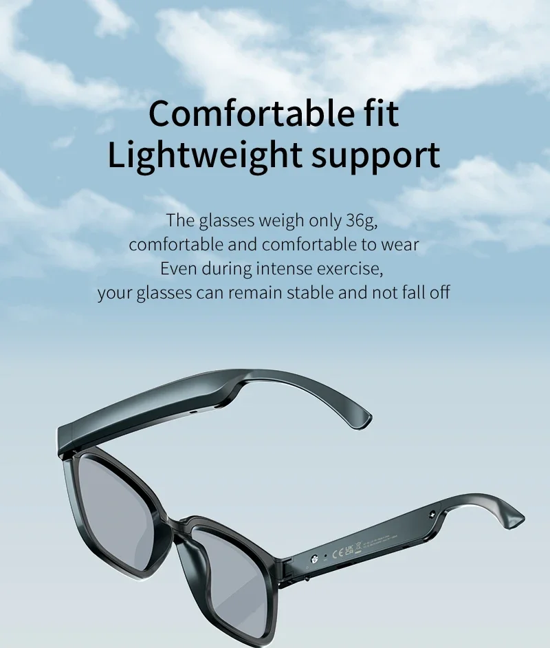 Wireless Bluetooth Smart Glasses multifunctional Voice Assistant Listen Music Navigation Glasses Calls Eyeglass Sunglasses
