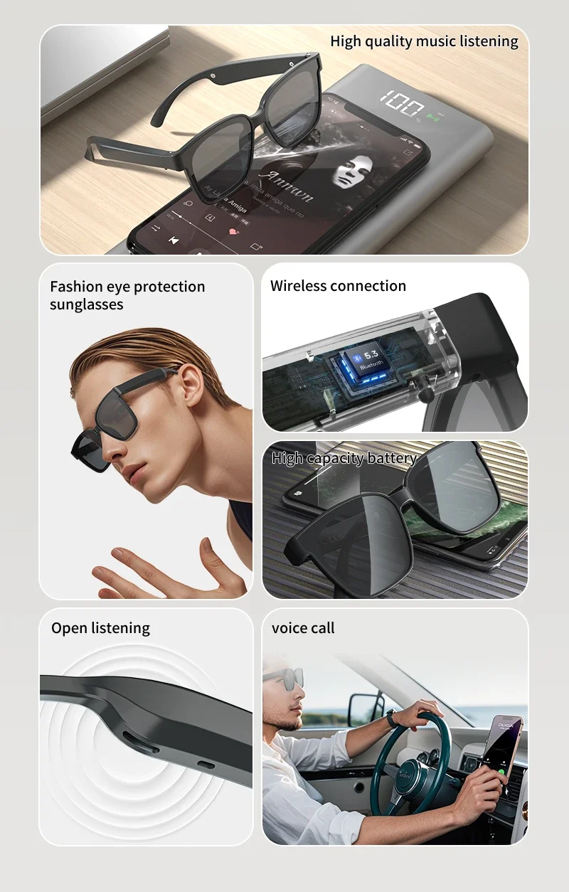 Wireless Bluetooth Smart Glasses multifunctional Voice Assistant Listen Music Navigation Glasses Calls Eyeglass Sunglasses New